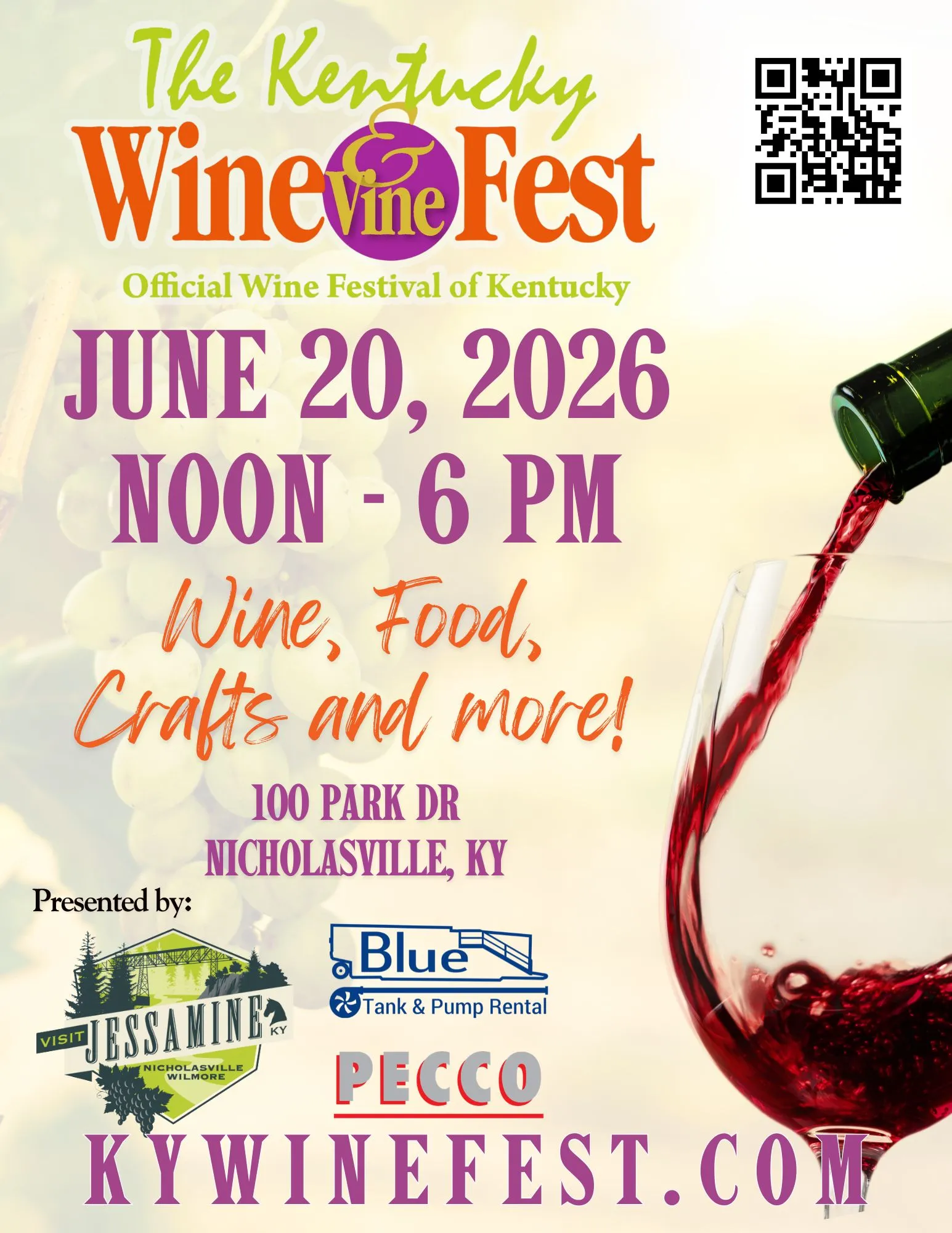 Join us in Jessamine County for an unforgettable celebration of Kentucky’s finest wineries, right here in the heart of the Bluegrass. Sip, savor, and explore selections from vineyards across the state—all in one place, all for one day.