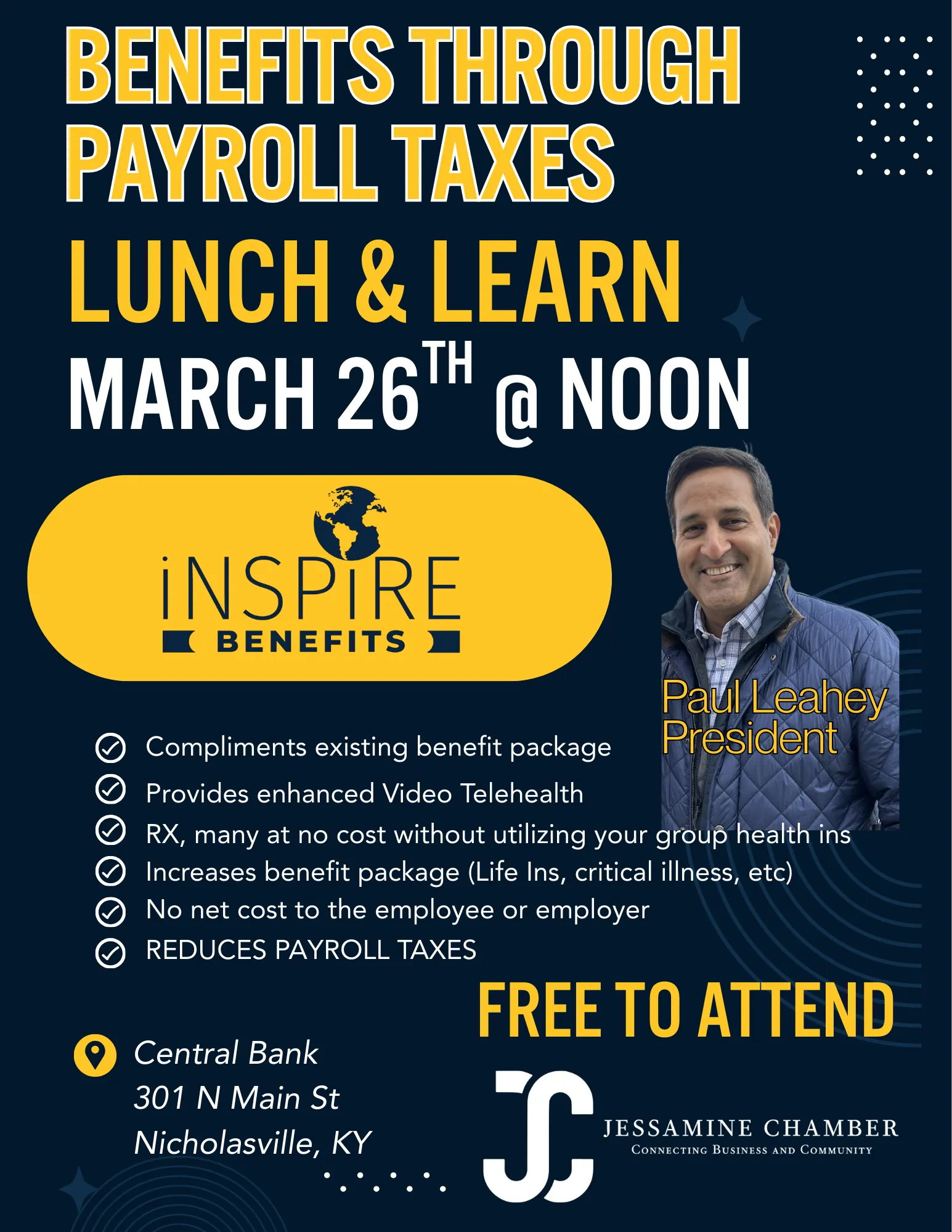 Join us Thursday, March 26th to learn all about benefits through payroll taxes from Inspire Benefits' President, Paul Leahey.